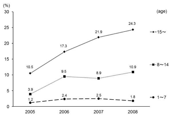 日本2005-2008年期間,急診CPR患者靜脈穿刺成功率 |
